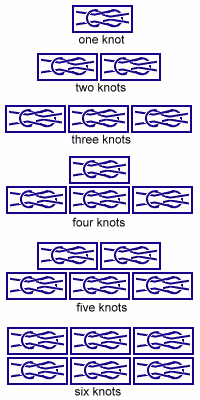 From the diagram, you can see that as additional knots are earned, single and double knots on a row need to be resewn. For this reason, some people prefer to place knots right-justified with the pocket edge.
