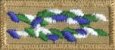 Green/blue/white on green/blue/white knot on tan background with tan border. Award Requirements:
